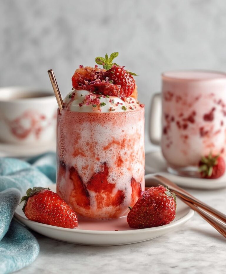 - For an extra cafe-style touch, garnish your finished drink with a fresh strawberry slice on the rim or a tiny sprig of mint, enhancing both its beauty and aroma.